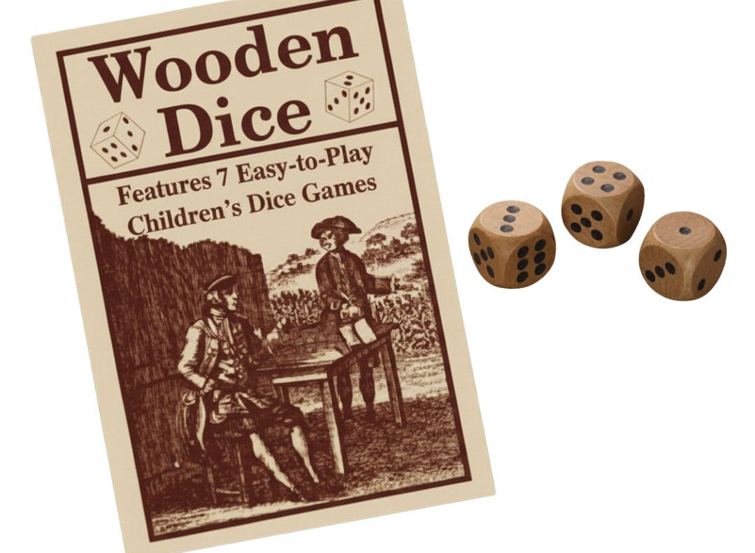 This traditional Wooden Dice set comes with three wooden dice, instructions for seven easy-to-play dice games for children, and a brief history. "Let 'em roll!"